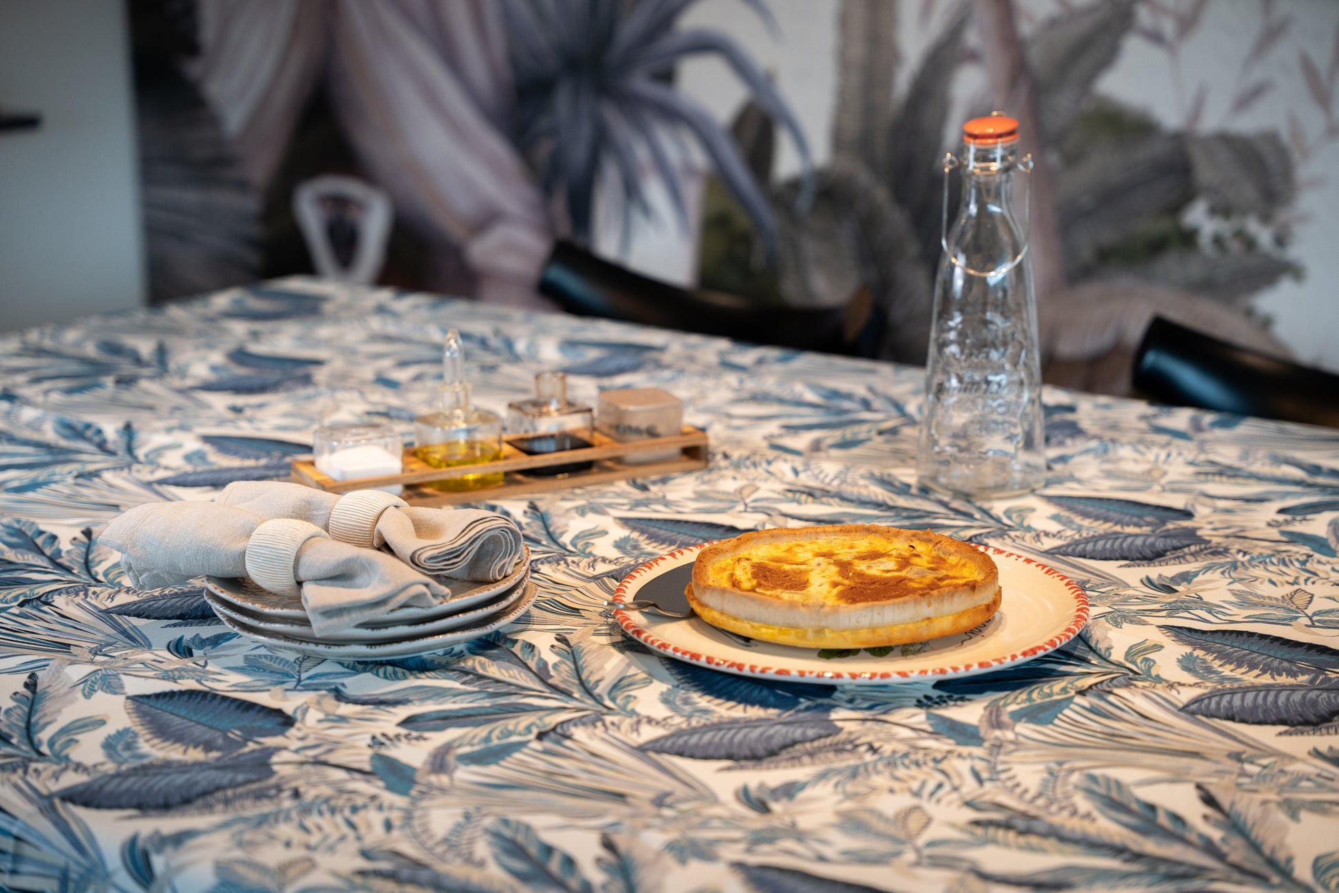 Lleno de frescura, el mantel “Hojas Azules” transforma cualquier mesa en un rincón lleno de vida. Perfecto para terrazas, balcones o cocinas luminosas, es práctico, fácil de limpiar y dar vida a tu mesa con calma y color.