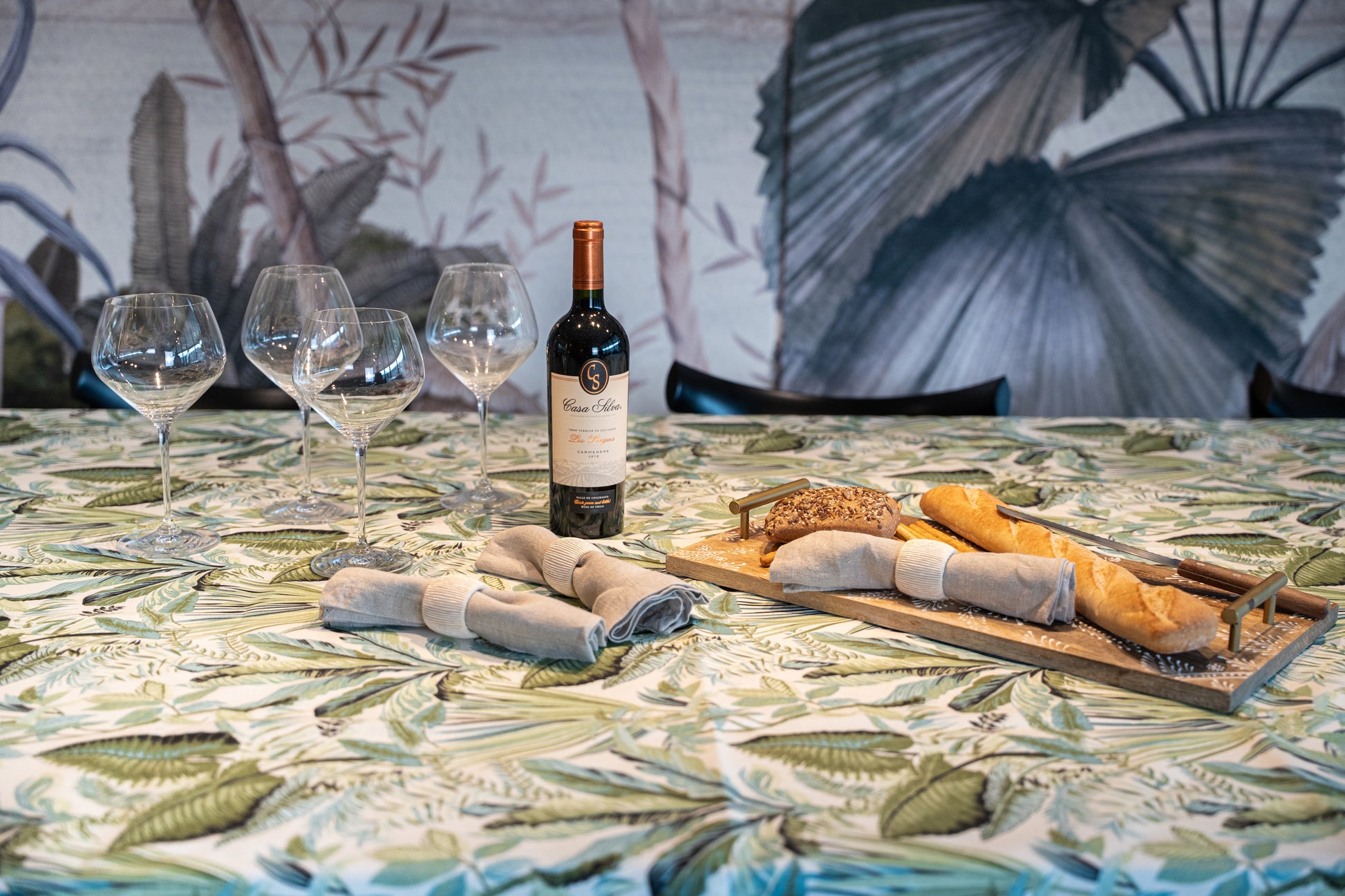 Inspirado en la naturaleza, el mantel “Hojas Verdes” evoca naturaleza y armonía. Su diseño aporta calma y frescura a tu mesa, mientras su tela repelente al líquido lo hace ideal para el uso diario. Perfecto para una mesa llena de vida y acogedora.
