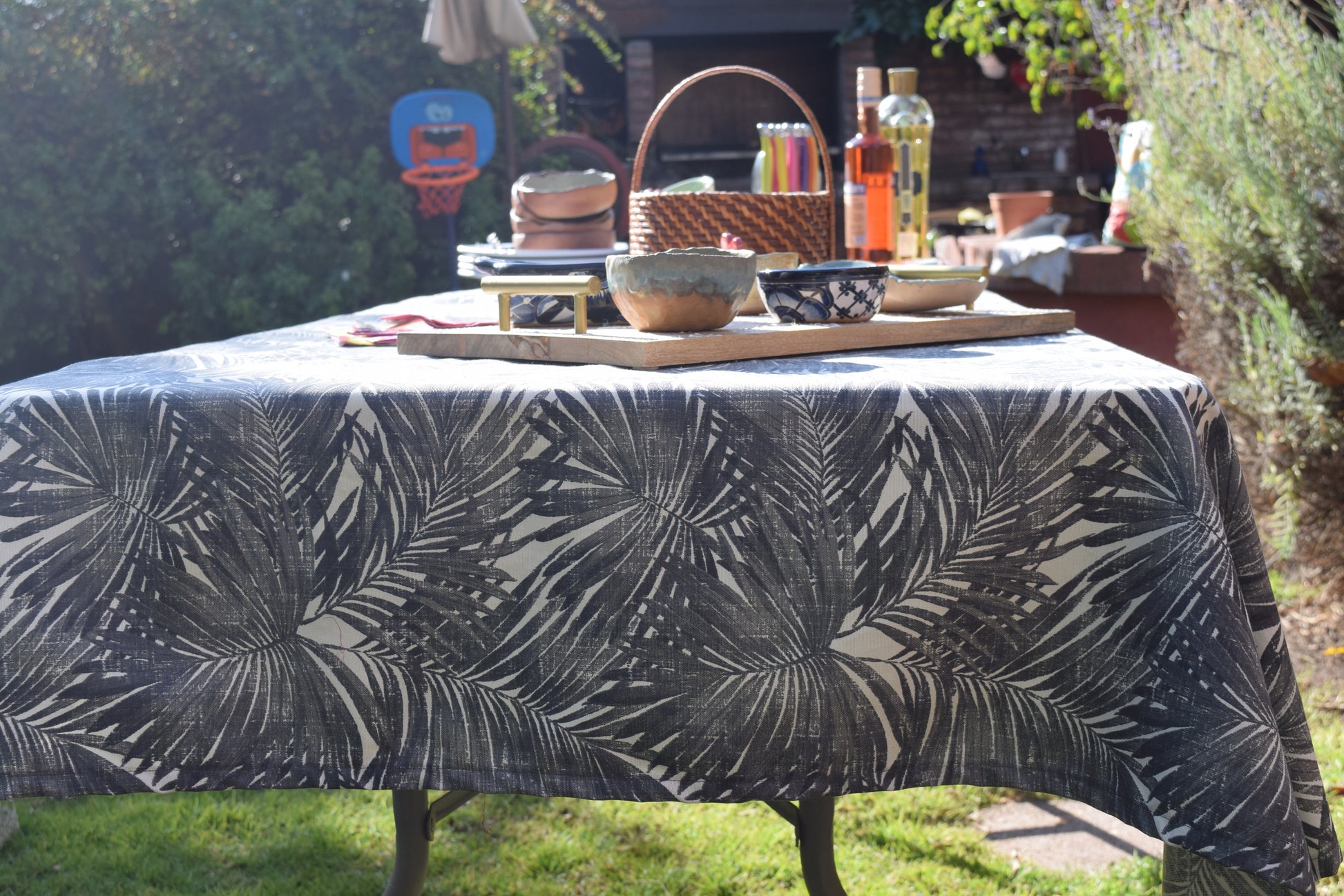 Sofisticado y con carácter, el mantel “Palmera Negra” es una opción elegante para ambientes contemporáneos. Su contraste en blanco y negro destaca cualquier decoración, y su tratamiento repelente al líquido garantiza tranquilidad en cada comida. Su diseño monocromático tropical lo hace de los favoritos de la colección.