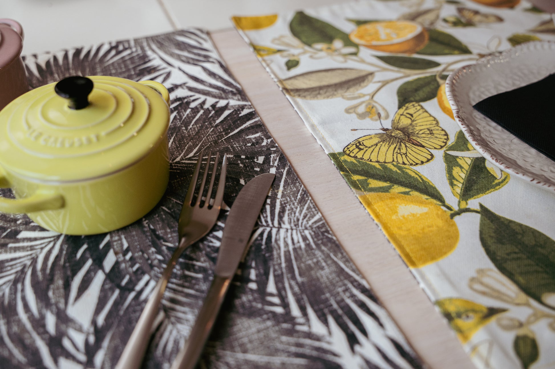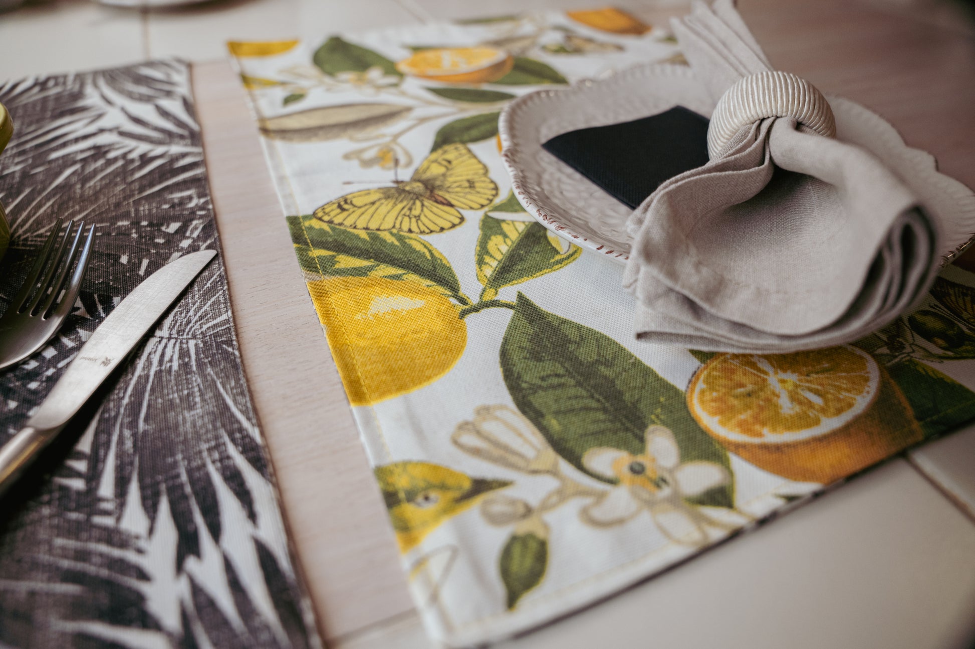 Set de Individuales Reversibles Palmera Negra & Limones